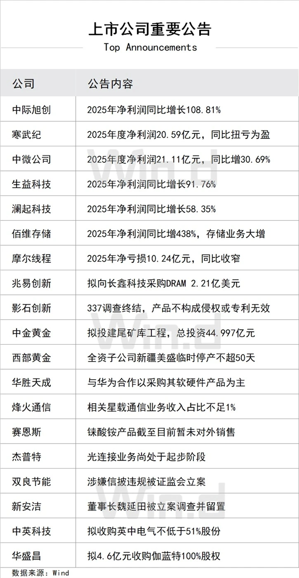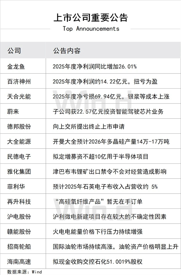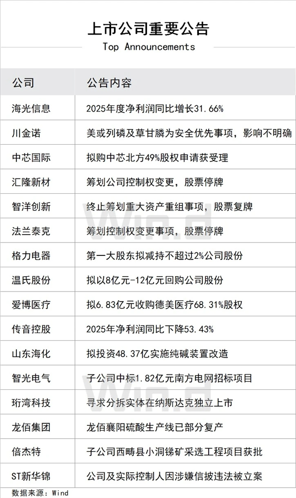 2. 央行:2026年2月25日,中国人民银行将以固定数量、利率招标、多重价位中标方式开展6000亿元MLF操作,期限为1年期。