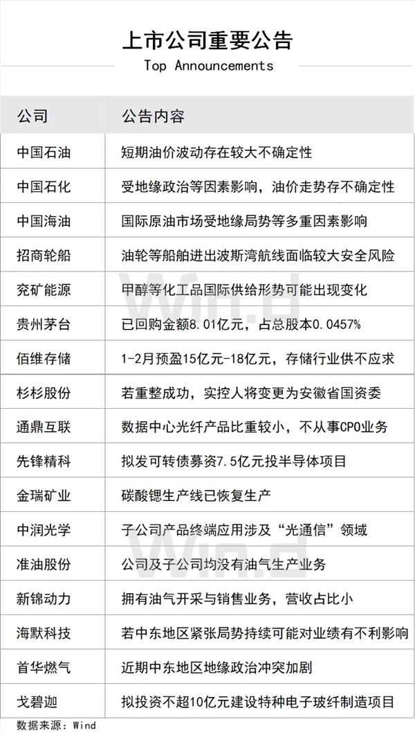 1. “三桶油”中国石油、中国石化、中国海油的股价历史首次集体以涨停价收盘。