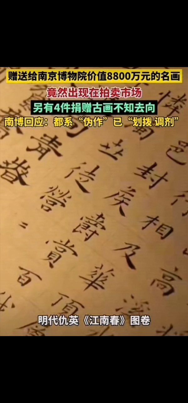 阖家欢乐 publish a video,(阖家欢乐发布了一个视频,): 赠送给南京博物院价值8800万元的古画竟然出现在拍卖市场