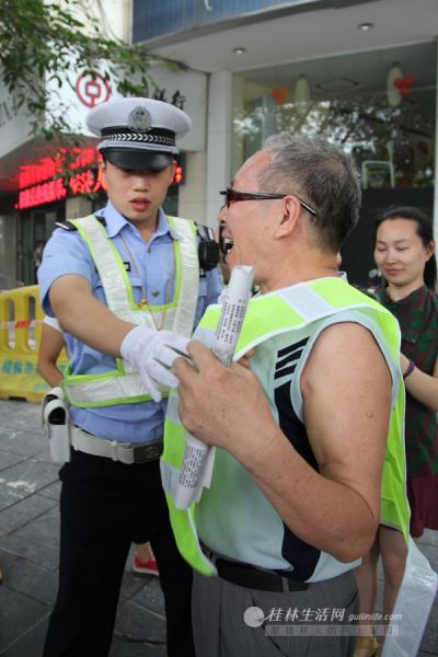 At 9 o'clock in the morning, in the Xiufeng district e junction, a more than 70-year old uncle to become what he is today, "pedestrian red light" first person. After police found him to roadside education, counseling, Grandpa puts on "green jacket" held Xiao Huang Qi, standing in the road traffic obligation to play 15 minutes to persuade. For his red light behaviors, Grandpa show I'm sorry, "I was wrong in going through, flawed is not afraid of being pointed out, I am willing to accept the punishment. "He said:" everybody should abide by traffic regulations, the punishment can serve as a reminder, it is very feasible. ”