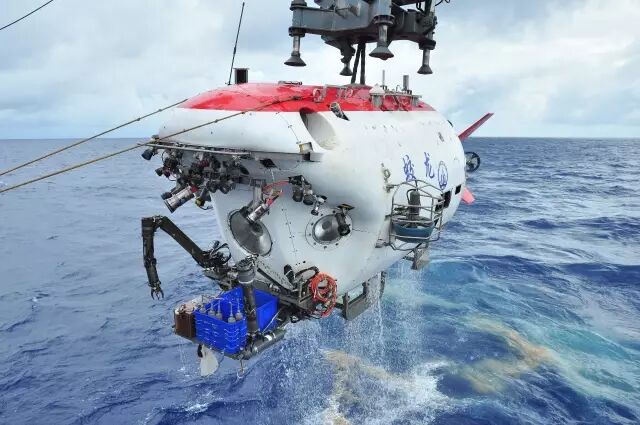 5月20日,“蛟龙”号载人潜水器在完成大深度下潜作业后上浮至水面,即将被回收至“向阳红09”船。新华社记者 潘洁 摄
