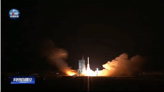 长征二号F T2火箭点火,托举着天宫二号腾空而起。