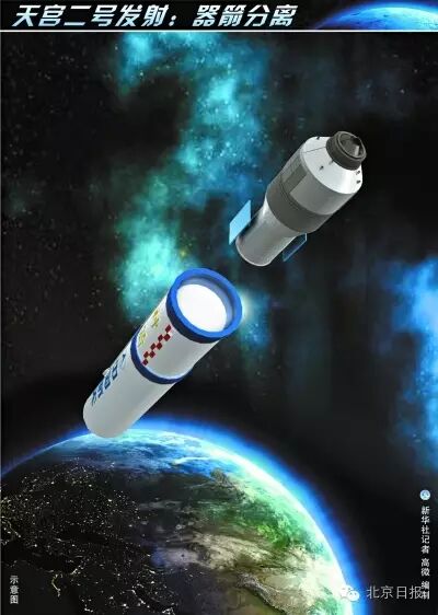 火箭与天宫二号分离,天宫二号进入预定轨道。