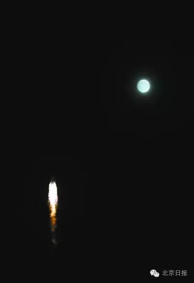 天宫二号在火箭的托举下发射升空。
