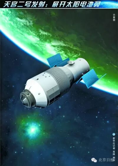 天宫二号展开太阳电池翼。