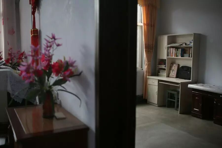 自从女儿离世之后,她的卧室一直保持着原样。进门的左手边是床,右手边衣柜靠墙而立,窗户旁边是徐玉玉做功课的地方,书架上的书摆放得整整齐齐,都是徐玉玉喜欢看的书,《围城》、《巴黎圣母院》、《傲慢与偏见》……