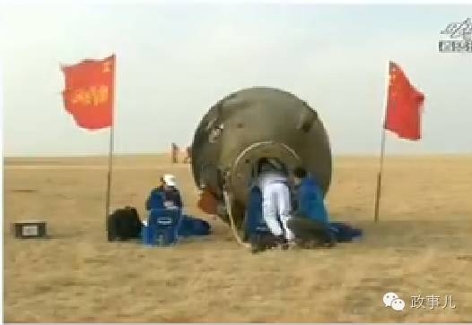 18th 14:07, 11th spacecraft Shenzhou re-entry capsule landed safely in siziwang banner of Inner Mongolia Prairie landing sites, Jing haipeng Chen Dong and the Arc de Triomphe.