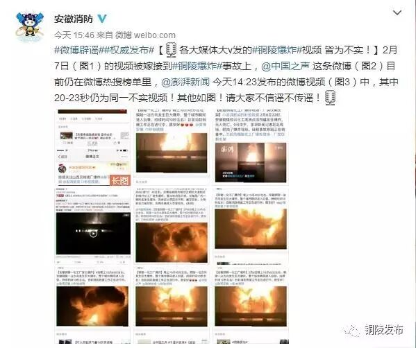 不信谣不传谣,不要转发一些朋友圈和自媒体的不确切的报道!共同维护稳定的公共秩序!  来源:铜陵新闻网、铜陵台、各大官微综合