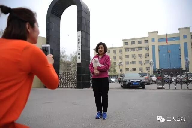 4月4日上午9时,安新县政府门口,不少人在此合影留念。一位年轻母亲告诉记者,“听周围的人说,安新县可能以后就不存在了,特意带孩子来拍个照。”