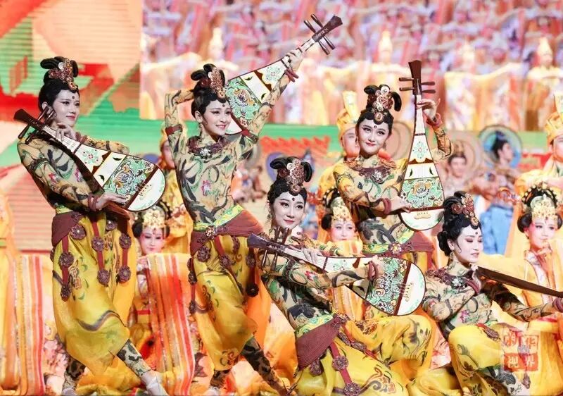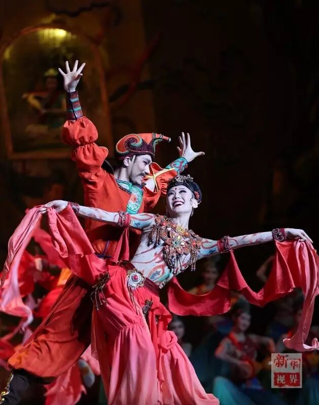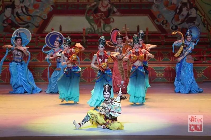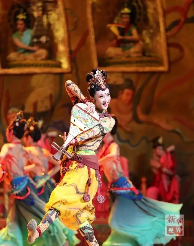 此舞展现了让人叹为观止的敦煌壁画,“反弹琵琶”“飞天伎乐”“胡腾”“胡旋”,惊艳飞天的曼妙仙女凌空翩跹,舞出一幅美轮美奂的丝路风情画。