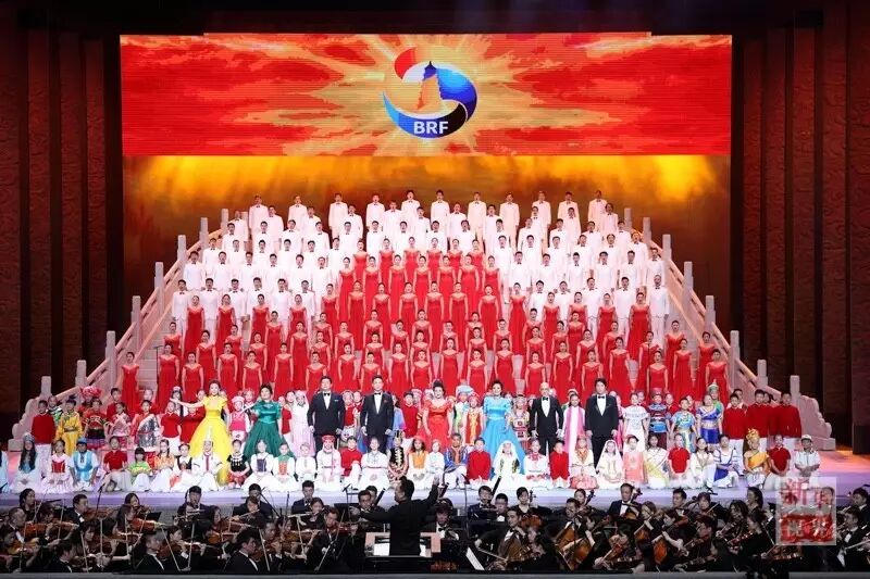 14日晚,“一带一路”国际合作高峰论坛文艺晚会“千年之约”在国家大剧院上演。