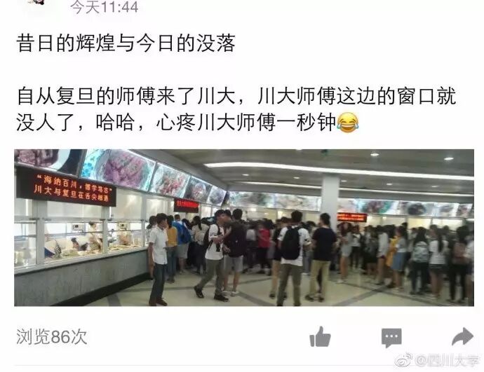 The author:(作者)aaapublished in(发表于) 2017/6/12 10:10:13 复旦厨师川大受捧-2条百米长队 从2楼排到1楼-川大-复旦