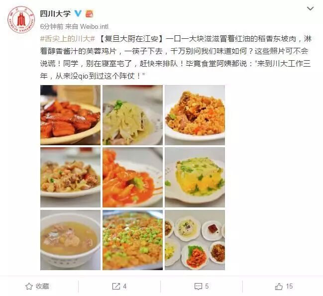 这不,续集来了!复旦的厨师们也在川大食堂做饭啦!为川大的学子们奉上稻香东坡肉、芙蓉鸡片……