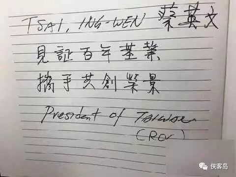 蔡上任第一个出访国家就是巴拿马。在巴拿马参观运河时,她写下“见证百年基业,携手共创荣景”,署名President of Taiwan (ROC)[台湾(中国民国)总统],引发一时轰动。如今,百年基业毁在她的手里,携手共创成了明日黄花。