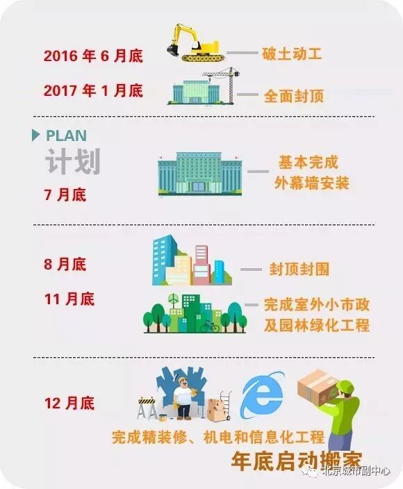 截止目前,行政办公区6平方公里四套班子和四栋委办局办公楼正在进行楼内二次结构砌筑、机电安装和幕墙施工。全体副中心参建者按照“世界眼光、国际标准、中国特色、高点定位、创造历史、追求艺术”的原则,构建“典雅庄重、和谐宜人、智慧高效、绿色环保”的行政办公区。以市级机关搬迁为牵引,形成配套完善的城市综合功能,着力打造三个“示范区”,
