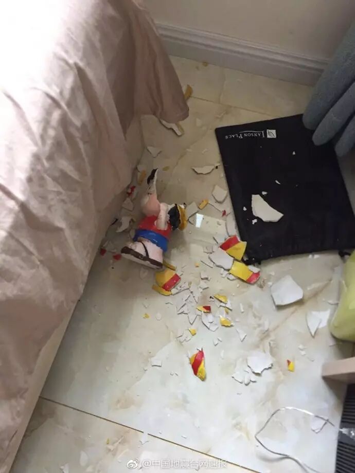 6度:惊慌——人站立不稳,家畜外逃,器皿翻落,简陋棚舍损坏,陡坎滑坡