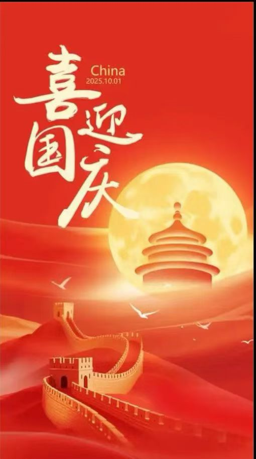 2025年10月1日,星期三,农历八月初十,国庆节快乐!